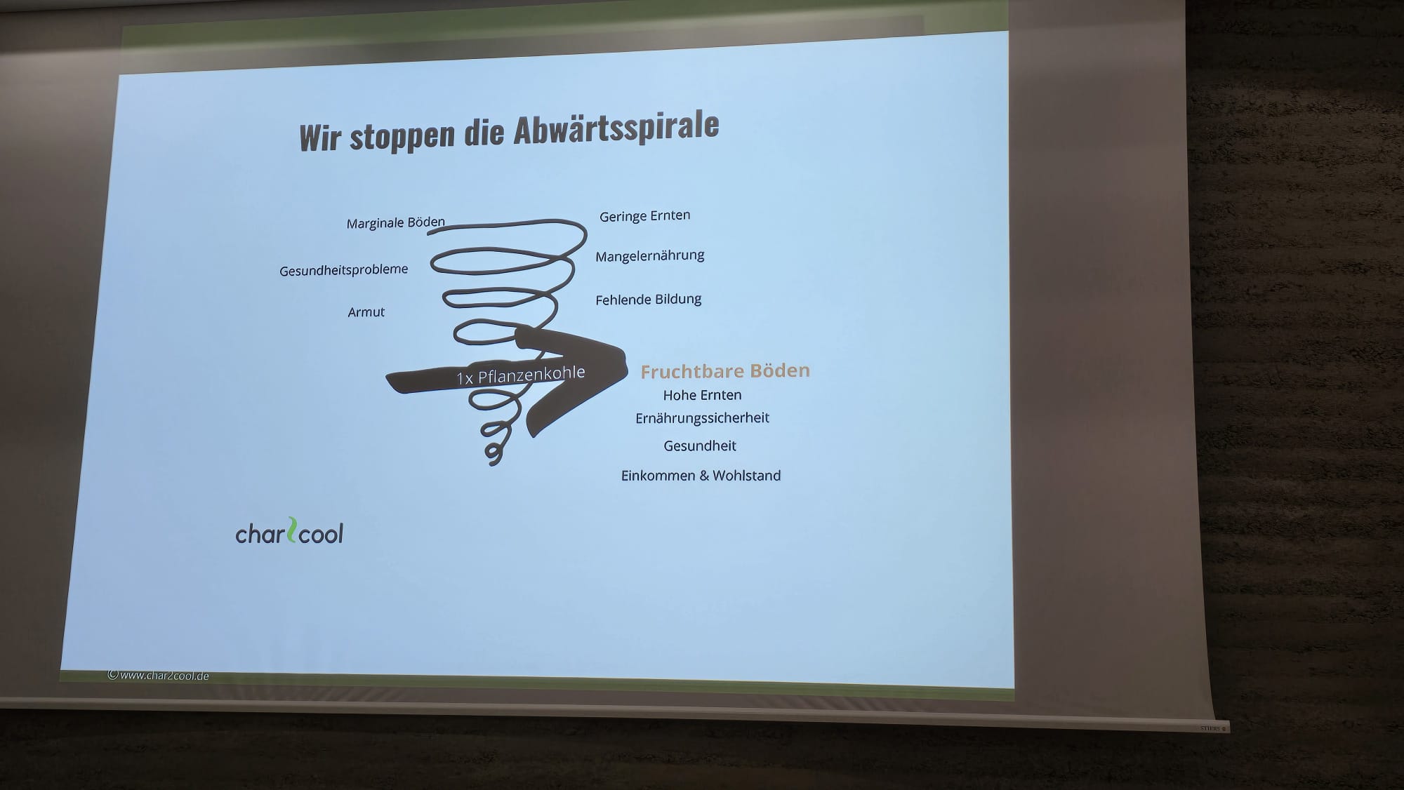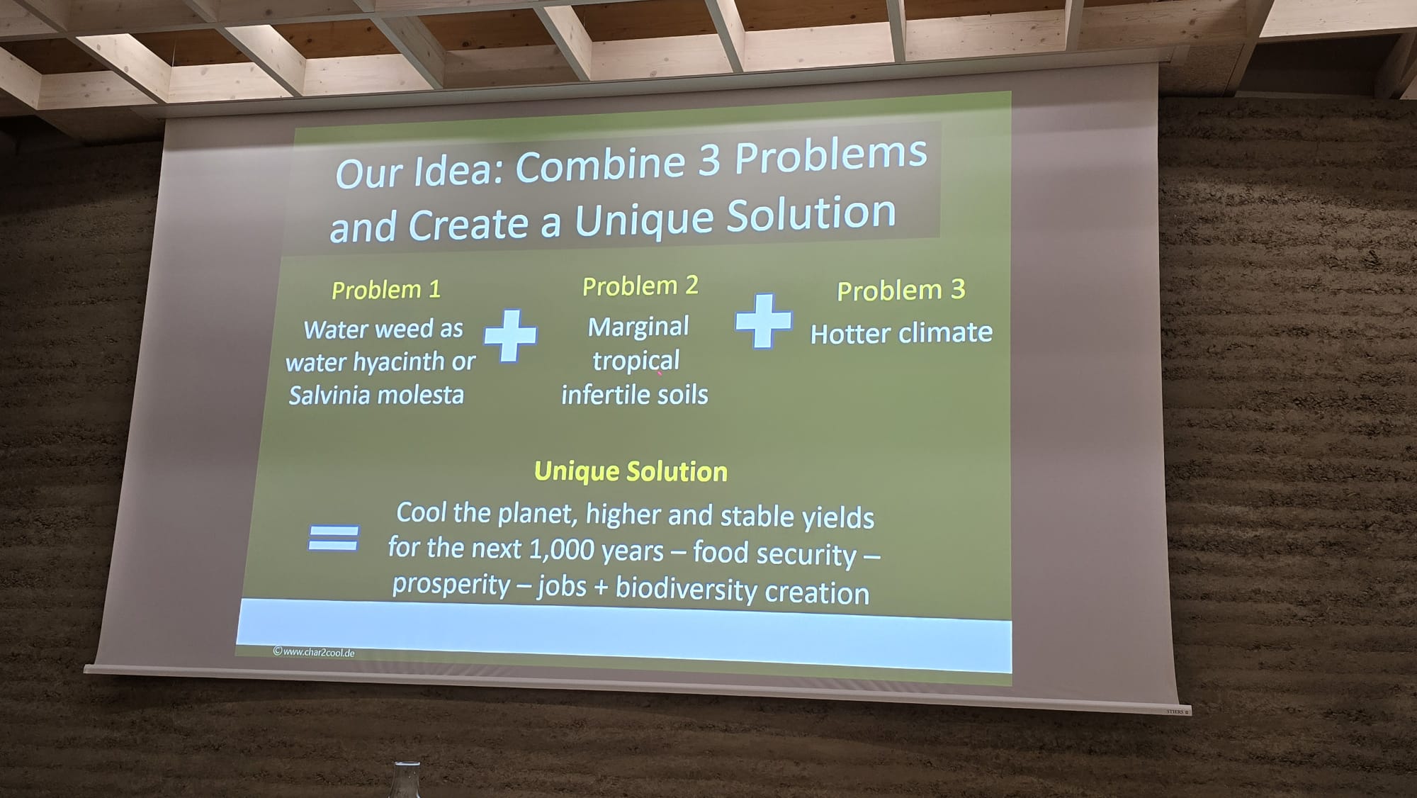 Das Erfolgsprojekt Char2Cool kompensiert CO2, indem Wasserhyazinthen aus Gewässern rund um den Äquator abgefischt und anschließend als Pflanzenkohle in ausgelaugte Böden eingebracht werden. So wird der Ausstoß von Methan verhindert und CO2 stabil im Boden gebunden. Char2Cool leistet damit einen beträchtlichen Beitrag zum Klimaschutz und schafft Arbeitsplätze und Ernährungssicherheit in armen Regionen.