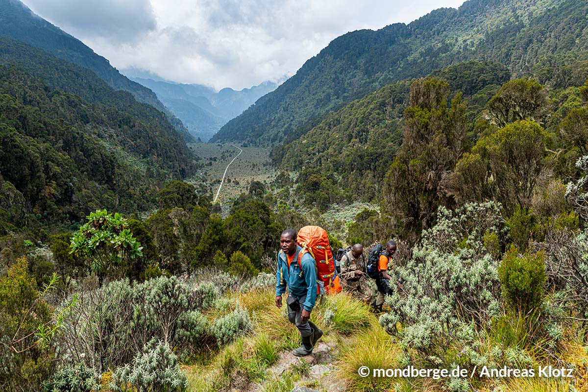Das ostafrikanische Ruwenzori-Gebirge, auch Mondberge genannt, liegt auf der Grenze zwischen der Demokratischen Republik Kongo und Uganda. Neben Kilimandscharo und Mount Kenya ist es das dritthöchste Gebirge des Kontinents, dessen Gipfelregionen zum Teil vergletschert sind, obwohl es in den tropisch-heißen Regionen ganz nah am Äquator liegt. Nahezu alle Gipfel des Zentralmassivs, von denen sich fast alle in Uganda befinden, liegen oberhalb der Schneegrenze. Doch die Gletscherfläche geht aufgrund der Klimaerwärmung zurück und Wissenschaftler rechnen damit, dass die Gletscher bald ganz verschwinden könnten. Dabei stellt das Ruwenzori-Gebirge für die afrikanische Flora und Fauna mit seinen üppigen Bambuswäldern, dichten Moosteppichen, klaren Wasserfällen und Gletscherseen einen wichtigen und artenreichen Lebensraum dar. Wegen seiner hohen ökologischen Bedeutung ist es Teil des UNESCO-Weltnaturerbes.