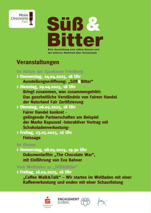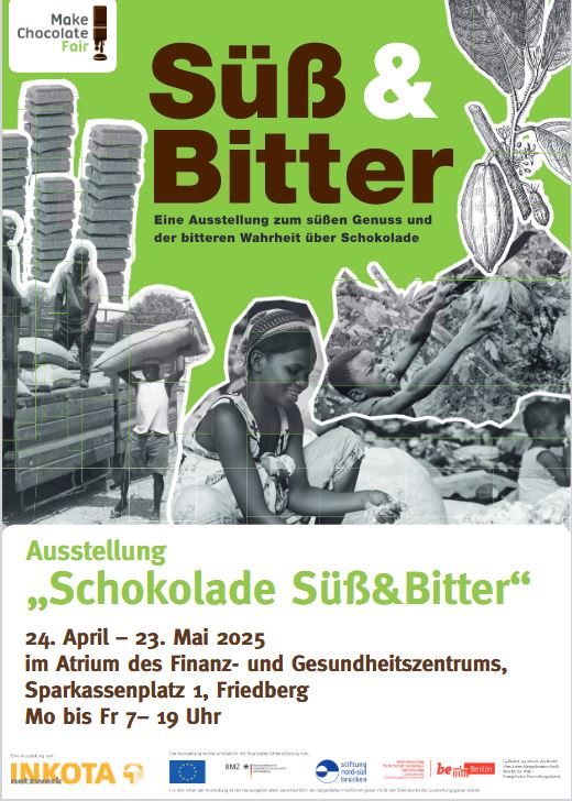 Fairtrade-Steuerungsgruppe und Weltladen Friedberg präsentieren vom 24.4. bis zum 23.5. die INKOTA-Ausstellung über Schokolade und sorgen für informatives und spannendes Rahmenprogramm.