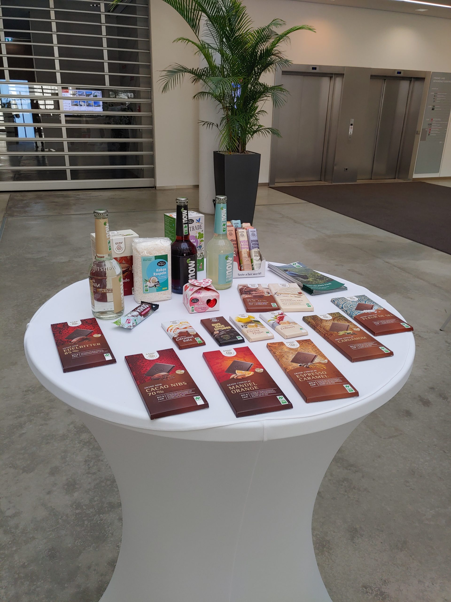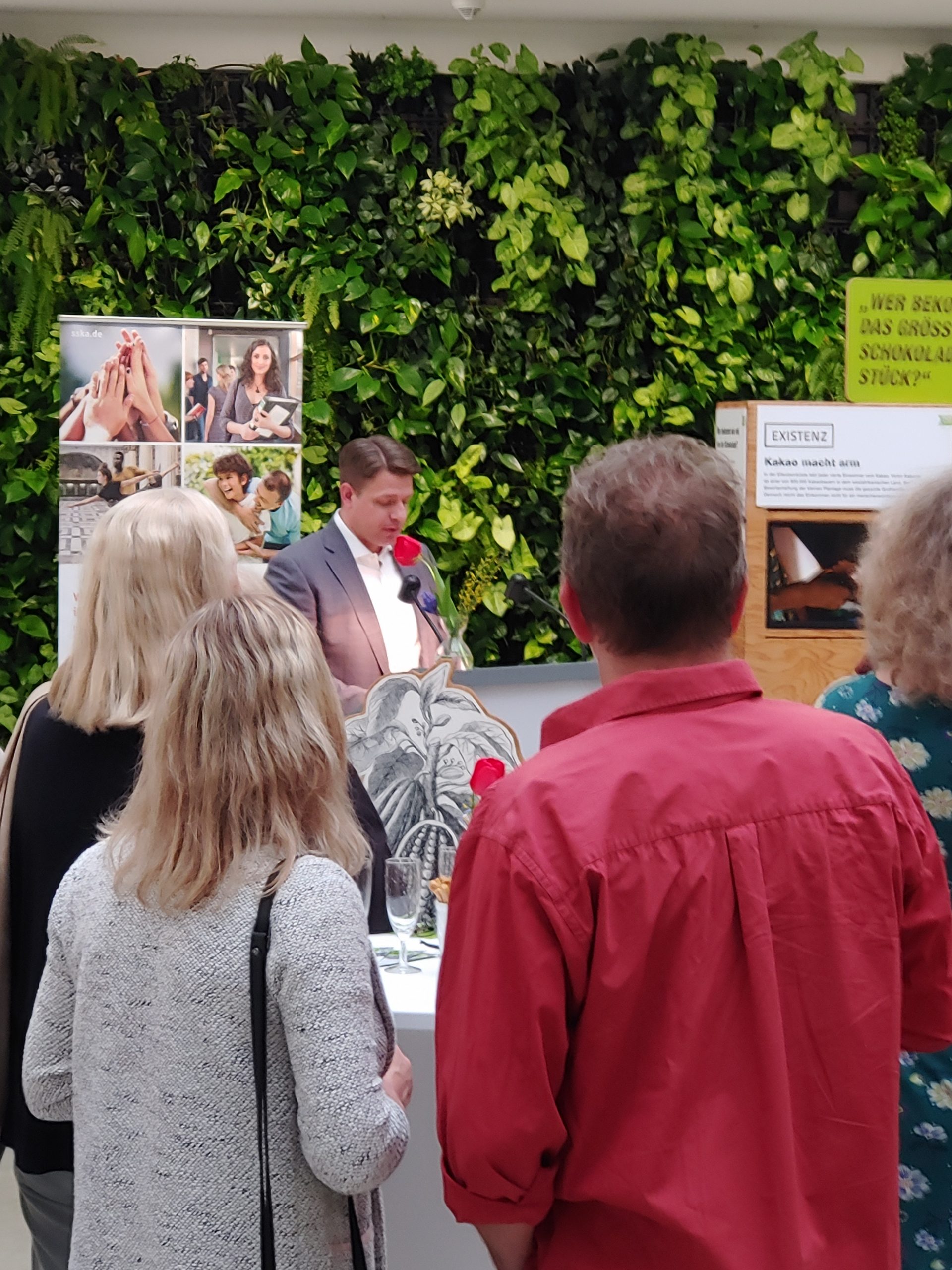 Bei der feierlichen Eröffnung am 24. April begrüßte Herr Andreas Heidler, stellvertretendes Vorstandsmitglied der Stadtsparkasse Augsburg, sowie Frau Claudia Eser-Schubert, 3. Bürgermeisterin, die rund 50 Gäste. Vom Auftakt der Ausstellung, über Vorträge von Naturland fair und Rapunzel, eine Filmvorführung im Divano “The Chocolat War”, eine GEPA– Verkostung auf dem Wochenmarkt, einen “Walk&Talk” mit Showrösten und abschließender Finissage am 23. Mai wurde ein umfangreiches Programm gestaltet. Dabei ist es gelungen, zum Einen den Teilnehmenden mit diesen interessanten Vorträgen zu informieren als auch mit fairen Produkte zu verköstigen. Ein großes Anliegen war den Organisatoren über Fairen Handel, in diesem Fall mit Schokolade, zu sensibilisieren und aufzuklären.