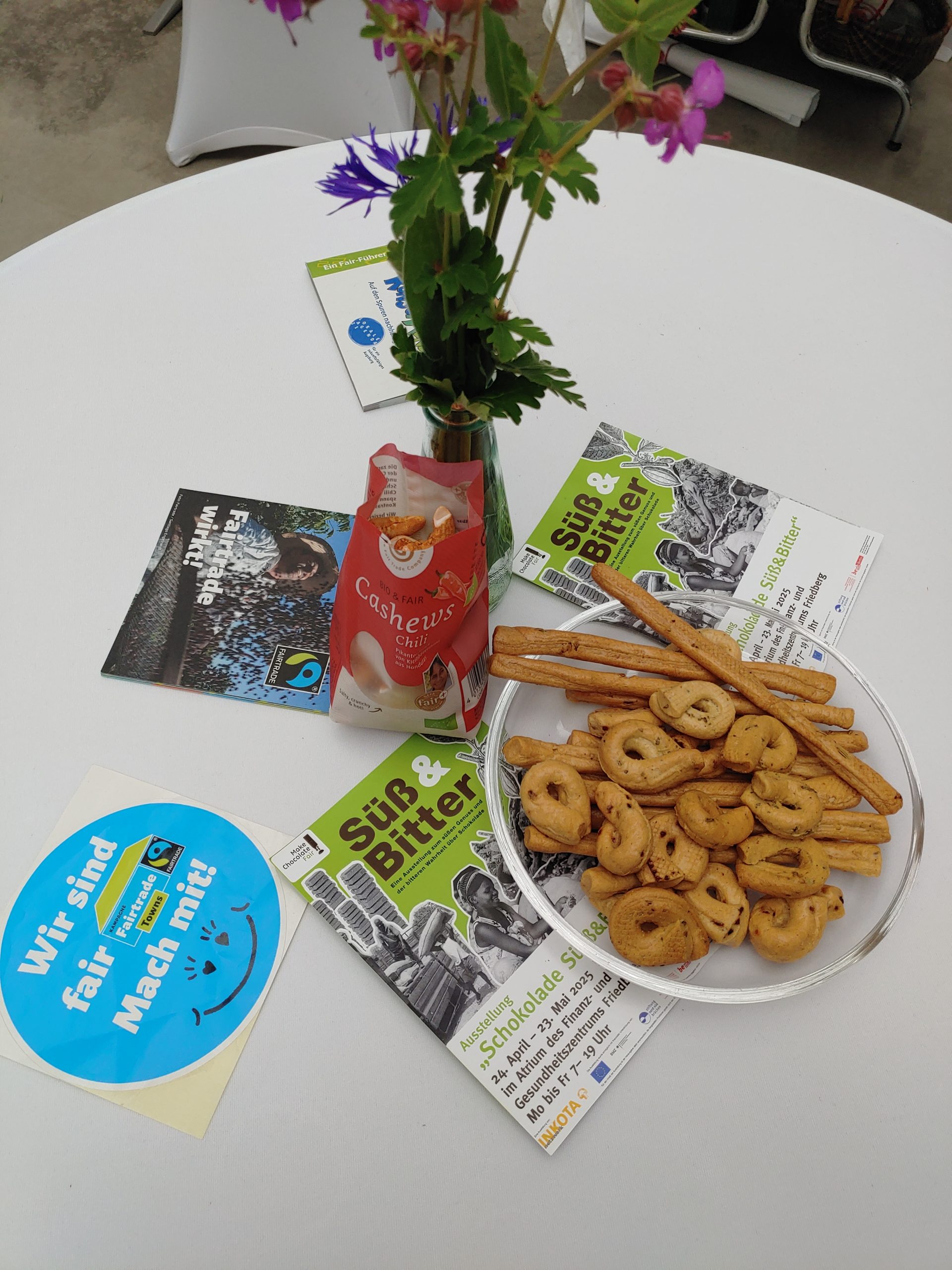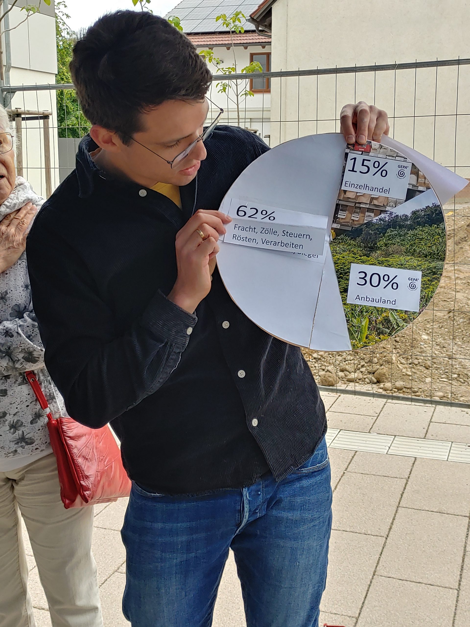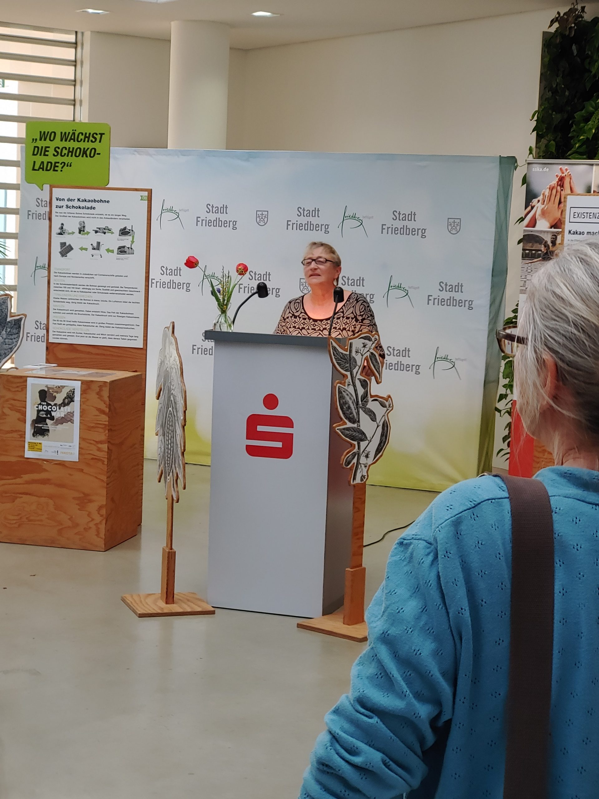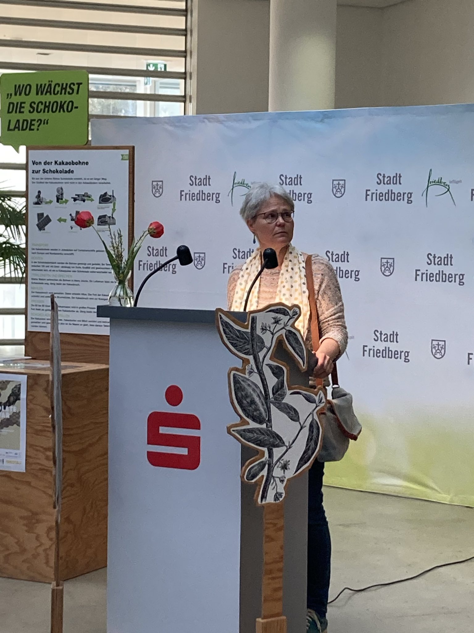 Im Rahmen der Zertifizierung zur Fairtrade Stadt Friedberg wurde so bereits ein breites Publikum erreicht. Ob gezielt Schulklassen oder Ministranten Gruppen, Patienten des Ärztehauses oder Kunden der Sparkasse, dieser Platz lud geradezu ein, sich einen Einblick zu verschaffen. Und obwohl dieses Thema aufwühlt wird auch hier wieder einmal deutlich, dass mit dem eigenen Kaufverhalten eindeutig Positives unterstützt und erreicht werden kann. Mittlerweile können wir uns dank dem Fortschritt der digitalen Medien und Veranstaltungen selber ein Bild machen und selbst überzeugen. Wir können selbst entscheiden, wen oder was wir unterstützen und so sogar ein politisches Signal setzen. Und ja, wir haben die Wahl. Denn wie es schon sehr oft ganz normal, richtig und wichtig ist, regional und saisonal einzukaufen, muss der Weg klar dahingehen, dass Luxusgüter wie Kaffee oder Schokolade aus gerechtem Handel kommen.