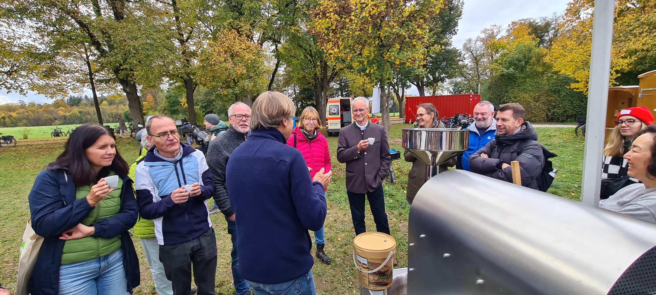 Der Oktober bildete den feierlichen Abschluss des Jubiläumsjahres. In der Nachhaltigkeitszeitung Stadt mit A erschien unser ausführlicher Jubiläumsartikel, der an die Anfänge des Fairen Handels in Augsburg erinnerte und zugleich die Herausforderungen der Gegenwart offen ansprach. Beim Welternährungstag stand der Vortrag von Frank Herrmann über Direct Trade im Mittelpunkt. Seine Erfahrungen aus Italien, Spanien und Lateinamerika machten eindrucksvoll deutlich, warum eine gerechte Gestaltung globaler Lieferketten heute dringender ist denn je. Im Markt der Alternativen konnten Besucher*innen verschiedene regionale und faire Initiativen kennenlernen. Kurz darauf führte uns der Walderlebnistag noch einmal hinaus in die Natur – ein Tag, der daran erinnerte, dass ökologische und soziale Fragen immer zusammengehören.