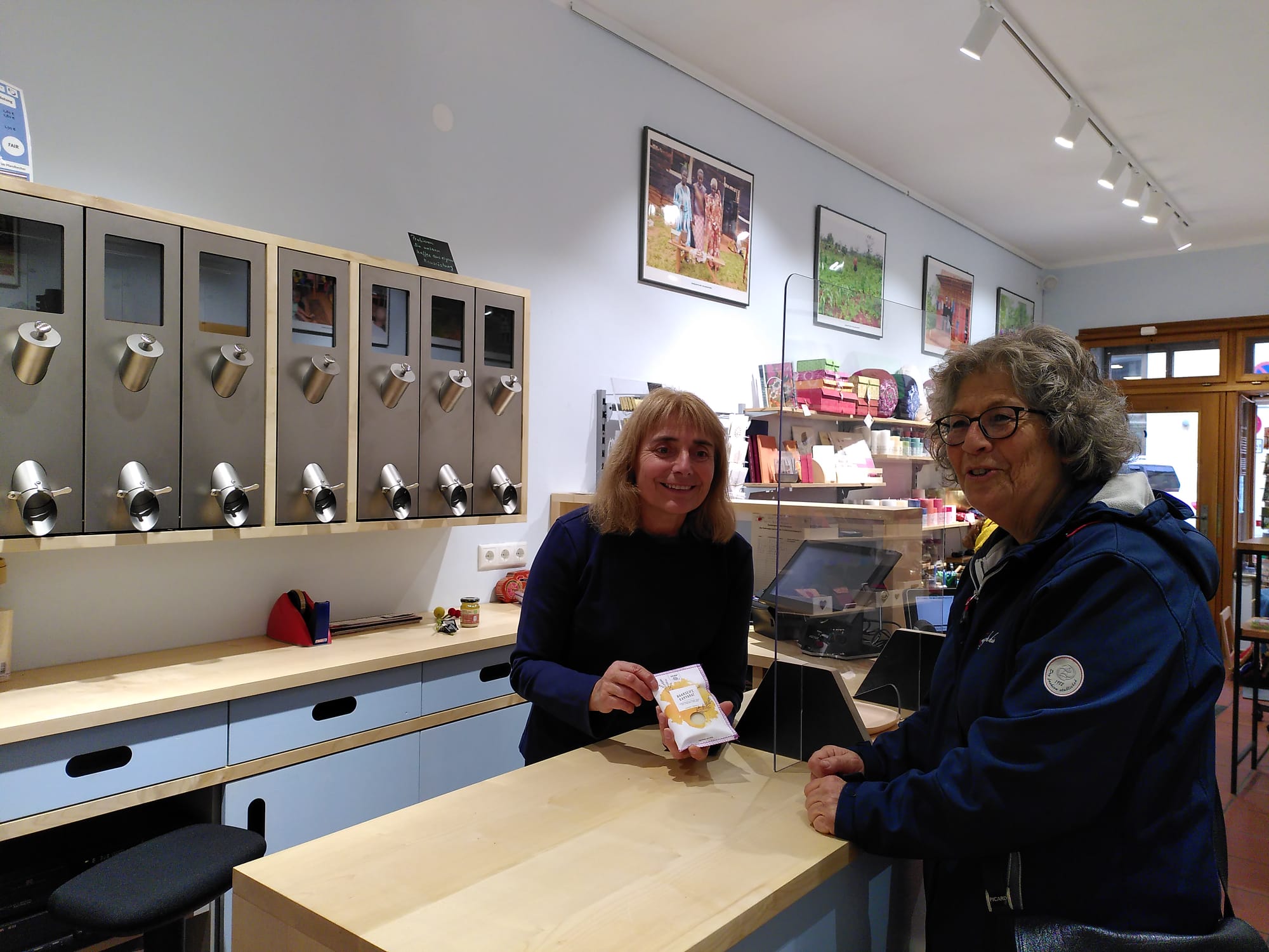 Noch einen Tag vor der Wiedereröffnung hätte man es ja fast nicht glauben können. Der ganze Laden sah noch so sehr nach Baustelle aus, dass man sich unweigerlich fragen musste, wie wir das alles bloß rechtzeitig schaffen sollen. Aber ein gesetzter Termin und viele helfende Hände machen es eben möglich. Der Laden sieht mit frischem Anstrich und neuer Theke super freundlich und einladend aus, wir bekommen tolles Feedback von unseren Kund*innen und auch die Umsätze sind beeindruckend! Dafür ein großes DANKESCHÖN an alle Haupt- und Ehrenamtlichen und an die wunderbare Augsburger Weltladen-Kundschaft!