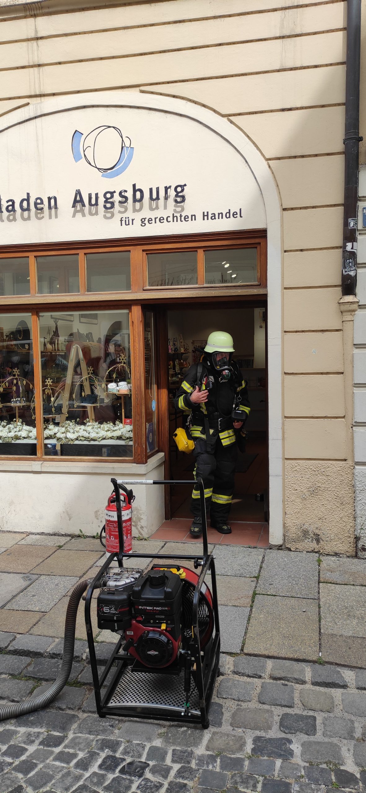 Da es sich um weißen Rauch gehandelt hat, hatten wir Glück im Unglück, denn niemand wurde verletzt und der Schaden ist tatsächlich nicht sehr groß! Momentan liegt noch ein ganz leichter Geruch im Geschäft, wir lüften aber gut durch. Unsere Ware hat auch keinen Schaden genommen, sogar die Textilien riechen nicht. Auf den Regalen liegt ein hauchdünner Staubfilm, den wir nach und nach wegputzen.