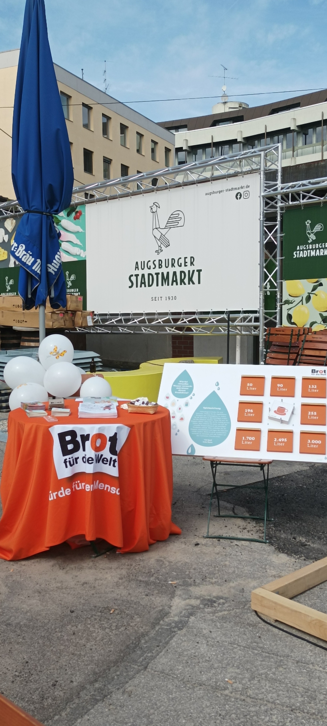 My company has organized an event on the 22th of March 2024 for World Water Day (Weltwassertag). This is an annual United Nations Observance focusing on the importance of freshwater. It is about taking action to tackle the global water crisis. So the target of my company was to educate people of the importance of water and that its presence is what keeps us alive and we must not waste it. We provided information and samples at the Augsburg City Market and talked to buyers about how much virtual water hides inside our food. Did you know that there is more water in chocolate than in beef? You can check your own water footprint here: