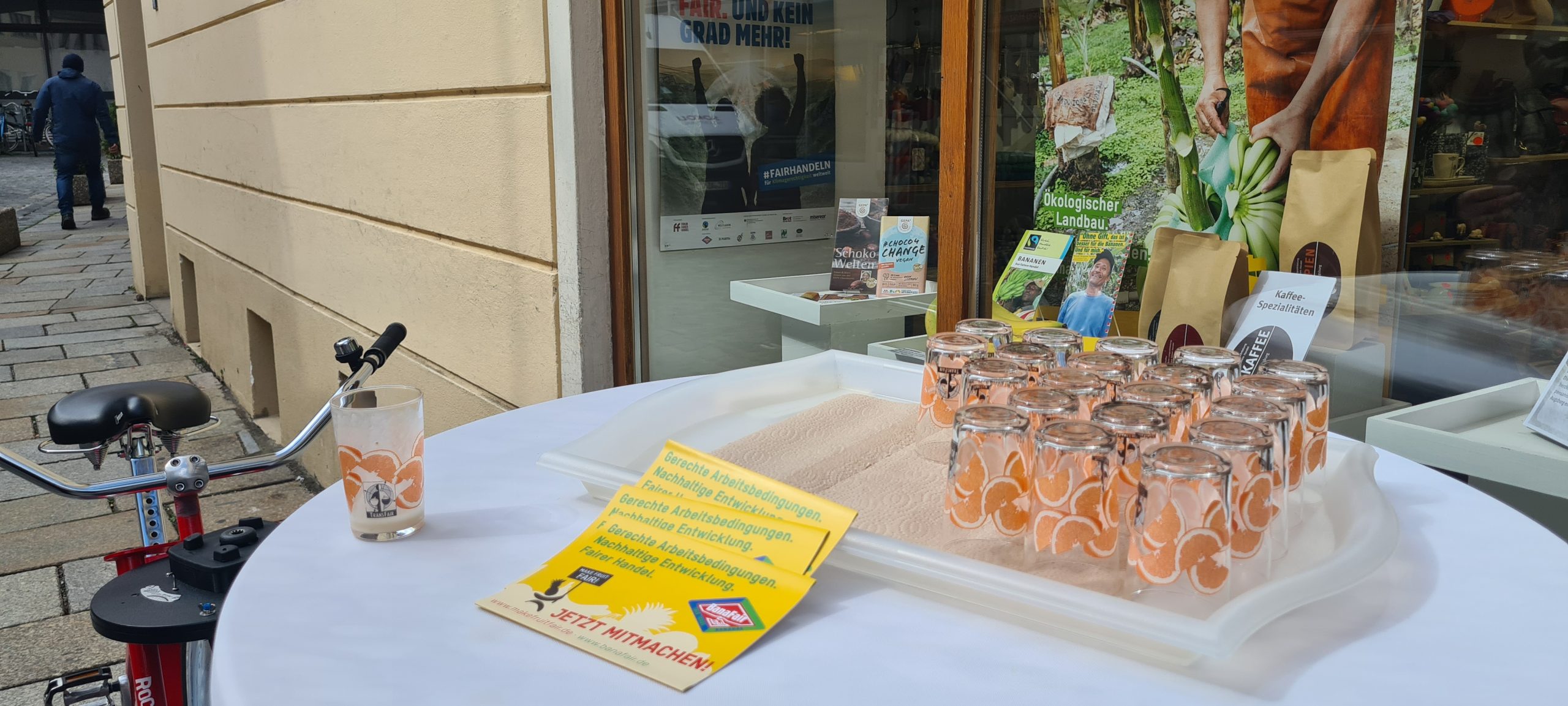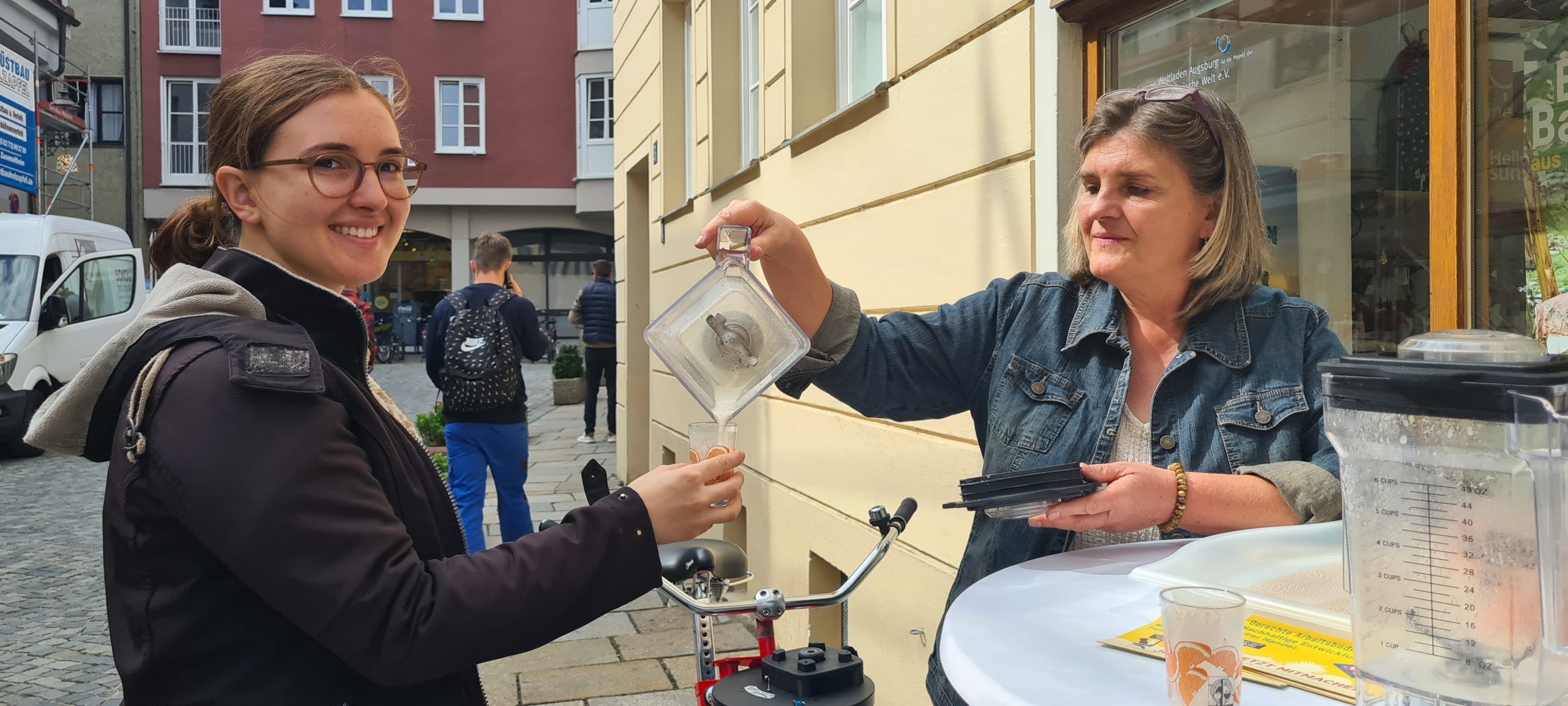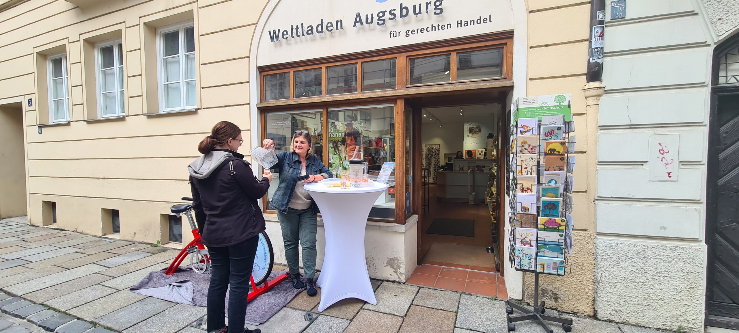 Am Mittwoch und am Weltkindertag laden wir alle Kinder und Interessierte zur Verkostung fair gehandelter Bananen in den Weltladen Augsburg ein. Allerdings müsst ihr euch den Bananen-Shake erst auf dem Smoothie Bike verdienen!