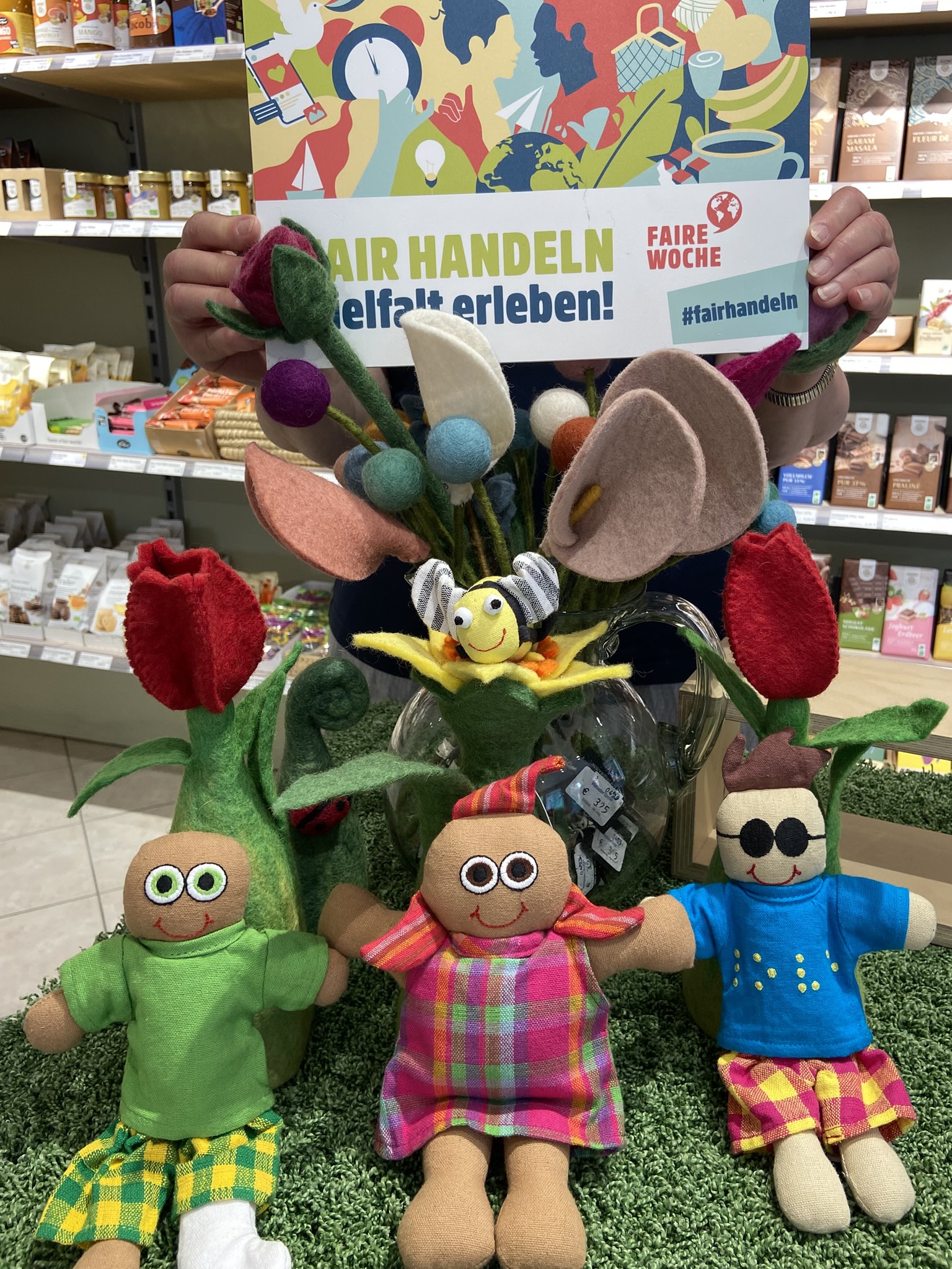 Vorfreude weckt schon jetzt die Aktion “Puppen der Vielfalt”. Die Puppen der Vielfalt sind zu Besuch an Orten, an denen Vielfalt, Toleranz und fairer Handel gelebt wird, wie z.B. bei uns im Weltladen Augsburg! Bei dieser Mitmach-Aktion der Fairen Woche 2025 werden die Vielfaltspuppen an verschiedene Akteure des Fairen Handels in Deutschland verschickt. Die Teilnehmenden setzen die Puppen in Szene – vor Wahrzeichen ihrer Stadt, mit FairHandels-Produkten, im Weltladen, mit lokalen Persönlichkeiten oder durch andere kreative Ideen.