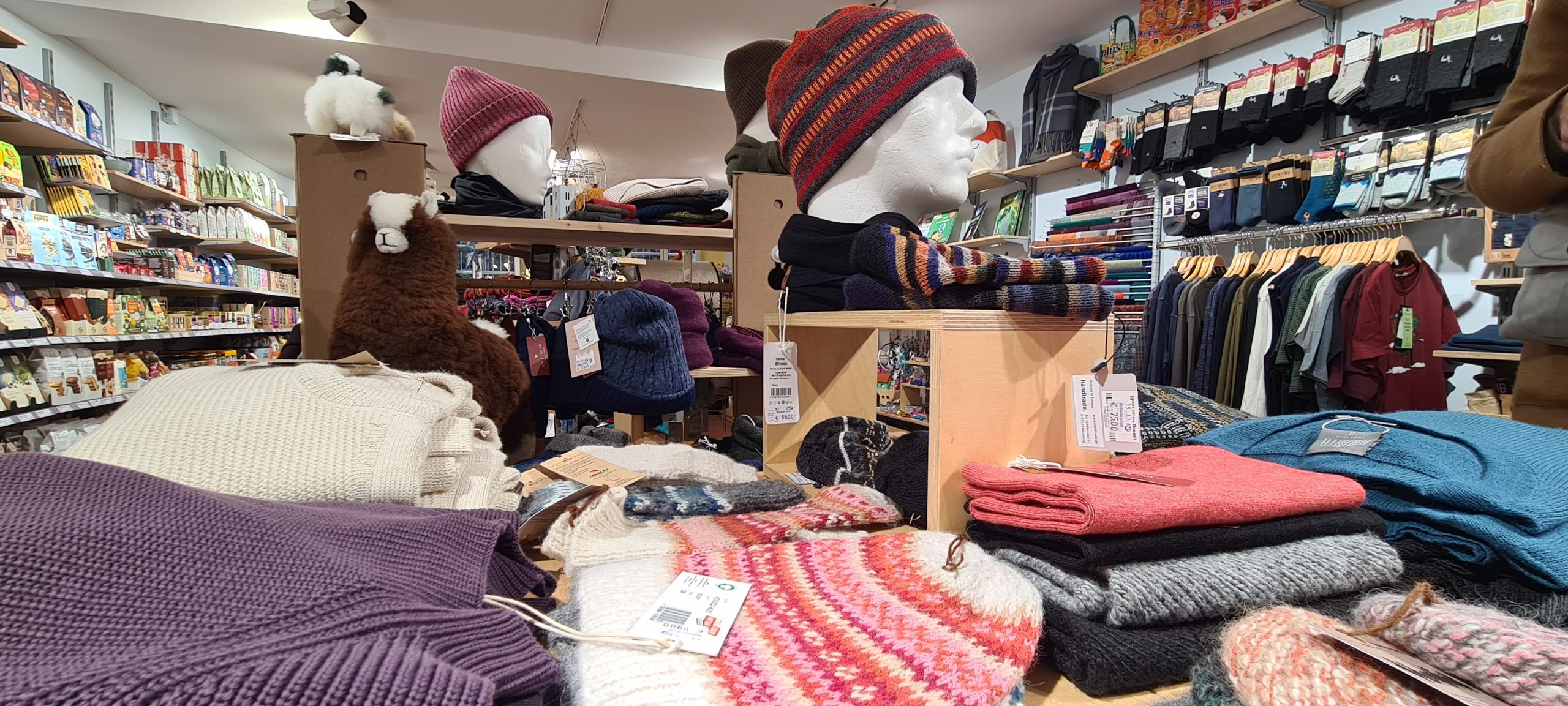 Von kunstvoll gefertigten Schals und handgedrehten Kerzen über naturbelassene Holzspielzeuge bis hin zu filigranem Schmuck – im Weltladen findet ihr Unikate voller traditioneller Handwerkskunst. Diese Produkte erzählen Geschichten: von Kunsthandwerker*innen in Nepal, Textilkooperativen in Peru oder von Familienbetrieben in Afrika und Lateinamerika. Auch für die Kleinsten gibt es passende Ideen: Kuscheltiere aus Alpakawolle oder Bilderbücher zu Themen wie Freundschaft, Toleranz und Fairness.