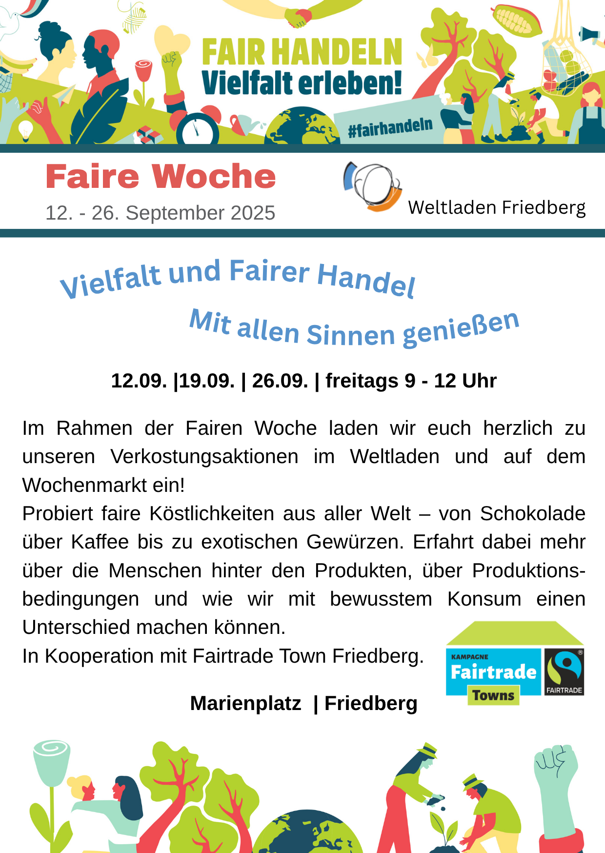 Vom 12. bis 26. September 2025 findet in ganz Deutschland die Faire Woche unter dem Motto ‚Fair handeln – Vielfalt erleben‘ statt!