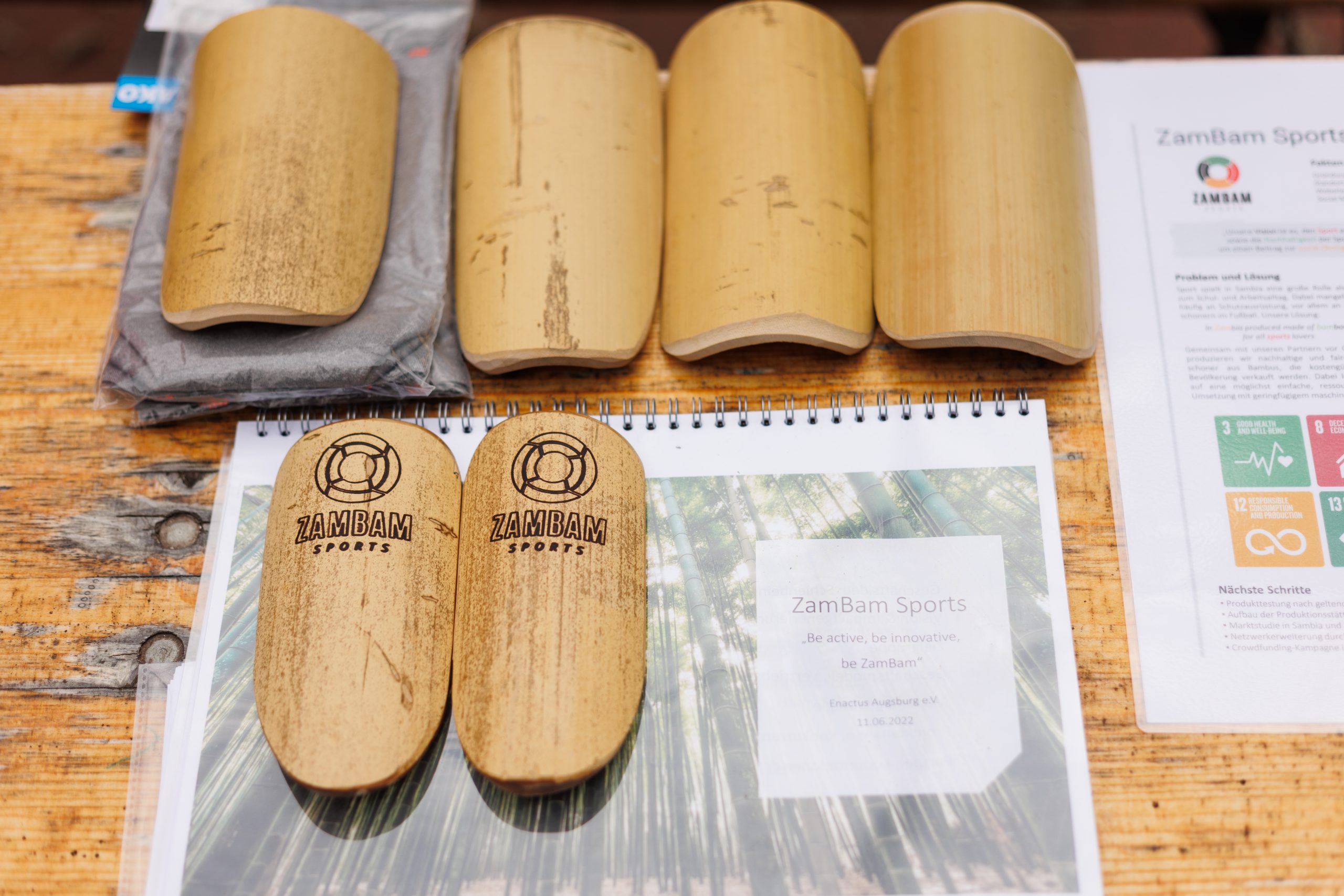 Sport spielt in Sambia eine große Rolle als Ausgleich zum Schul- und Arbeitsalltag. Dabei mangelt es jedoch häufig an Schutzausrüstung, vor allem an Schienbeinschonern im Fußball. Gemeinsam mit Partne*innen vor Ort in Sambia produziert ZamBam nachhaltige und faire Schienbeinschoner aus Bambus, die kostengünstig an die Bevölkerung verkauft werden. Dabei legt das Team Wert auf eine möglichst einfache, ressourcenschonende Umsetzung mit geringfügigem maschinellen Aufwand.